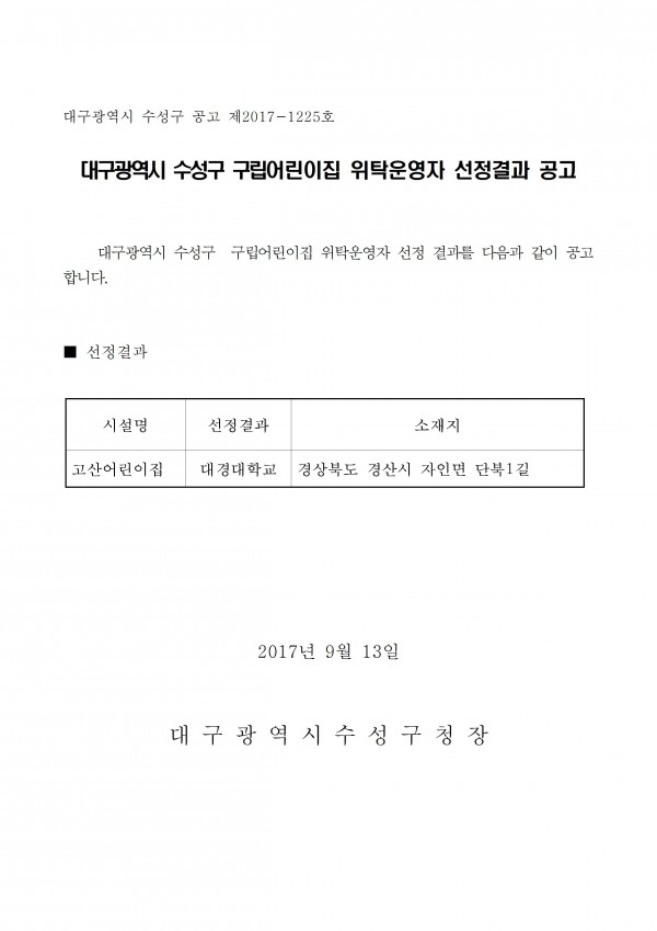 [경축] 대구시 수성구립어린이집 위탁운영자 선정
